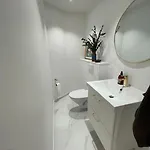 Enjoy the comfort of a bathroom in Nyrenoveret Charmerende Lejlighed I Odense C!, which is equipped with dryers and towels.